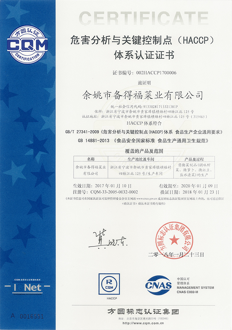 HACCP證書