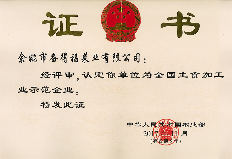 全國主食加工業(yè)示范企業(yè)