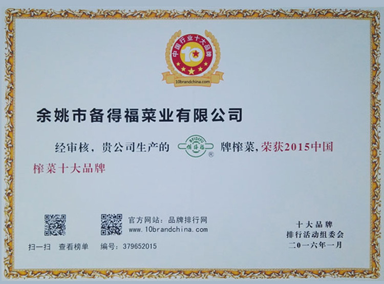 2015中國榨菜十大品牌