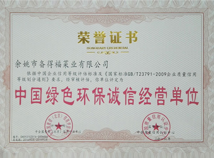 中國綠色環(huán)保誠信經營單...